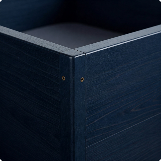 Nous n'utilisons jamais de colles chimiques ni de finitions toxiques. Toutes nos finitions sont à base d'eau et spécialement conçues pour les meubles pour enfants. Leur teneur en COV (Composés Organiques Volatils) est nulle, voire faible. Parce que vous et votre famille méritez le meilleur, toujours.